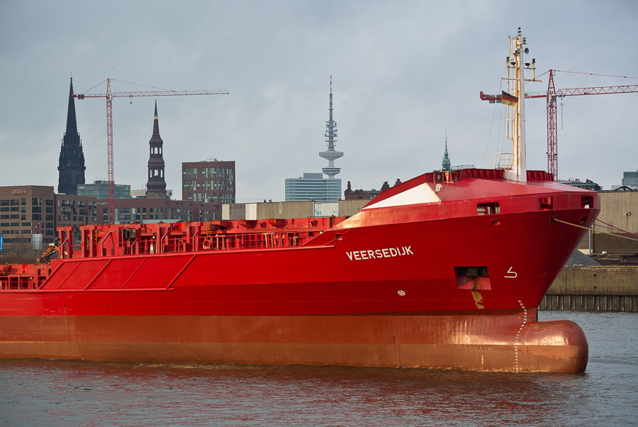 Containerschiff Veersedijk parkt ohne Fracht im Hamburger Hafen am Neujahrstag, 1. Januar 2012