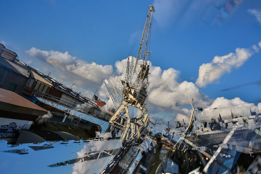 Dreifachbelichtung im HDR-Modus / Kräne am Hafenmuseum, 11. November 2012