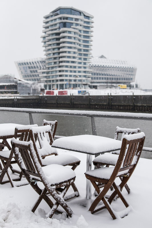 "Gut gepolstert", eine Sitzgruppe mit Blick auf den Marco-Polo-Tower, Hafencity, 10. März 2013