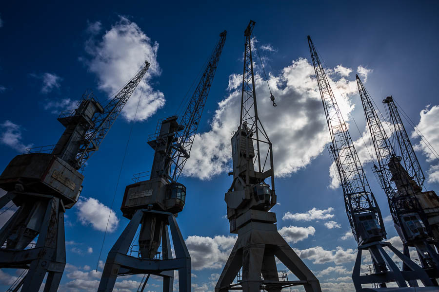"Kampnagel-Kräne" bei den 50er Schuppen - Hansahafen , 20. April 2013
