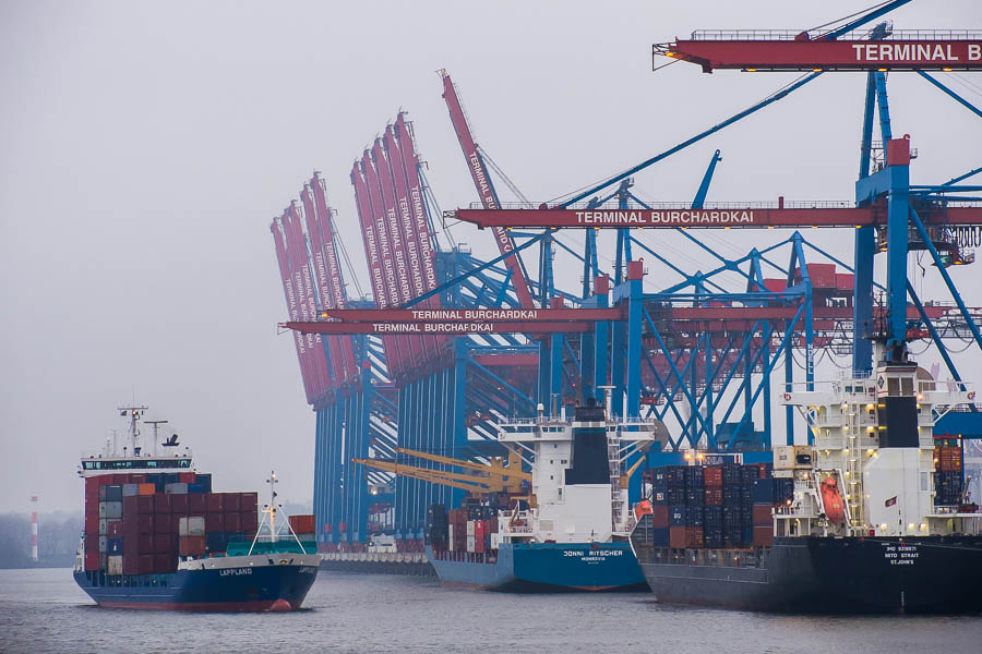 Ein trüber Januartag im Hamburger Hafen. Feederschiff Lappland vorm Terminal Burchardkai , 19. Januar 2014
