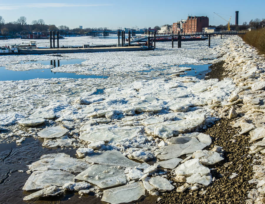 Eisschollen in der Billwerder Bucht bei Ebbe , 2. Februar 2014