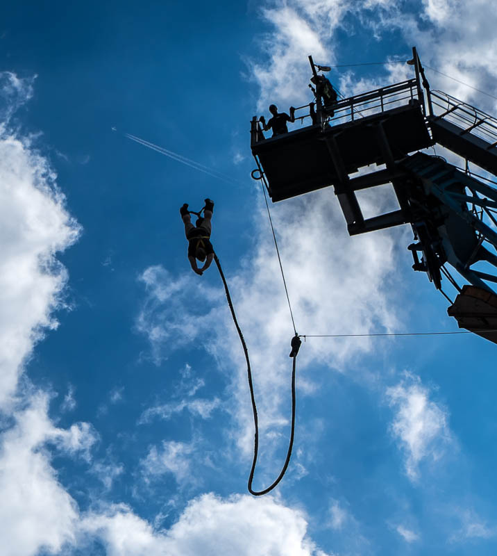 "Fliegen wie ein Düsenjet" - Bungeejumping von einem Kran im Hamburger Hafen, 25. Mai 2014