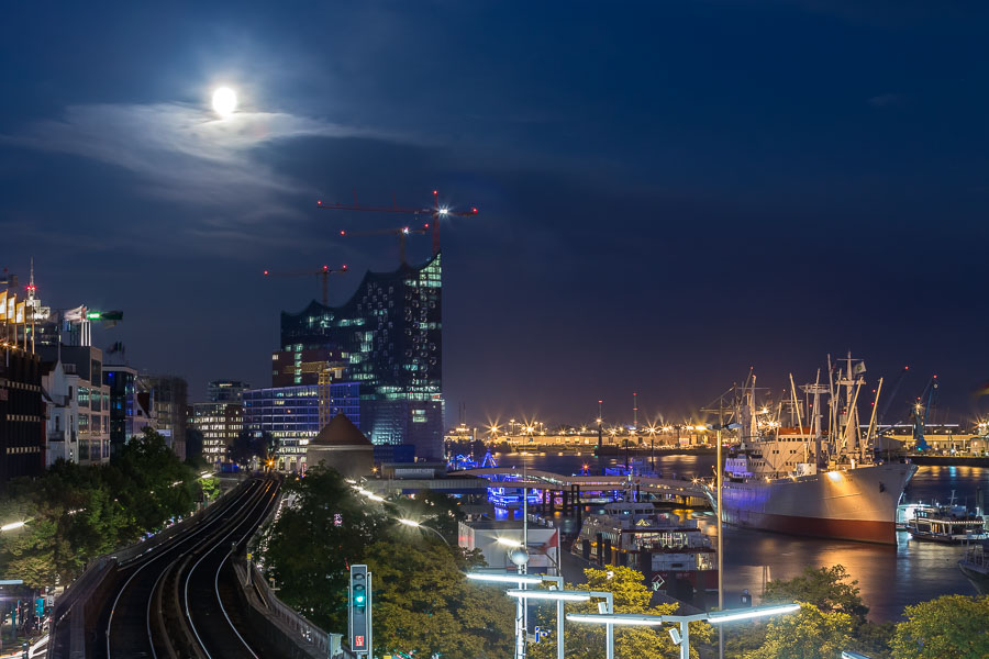 "Vollmond über der Elbphilharmonie" - Landungsbrücken, 11. August 2014