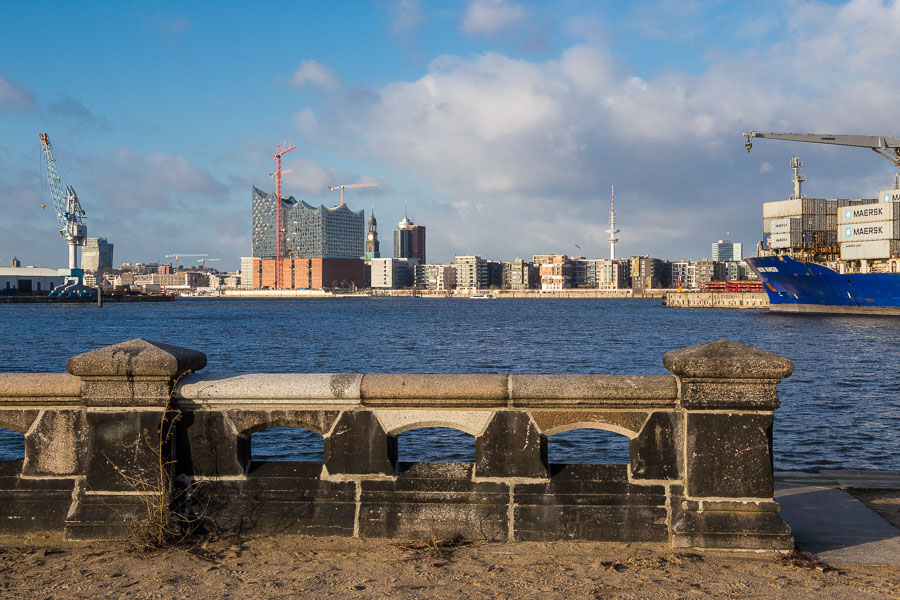 "Alte Hafenmauer, rekonstruiert und neu errichtet" - am Hansahafen, 4. Januar 2015