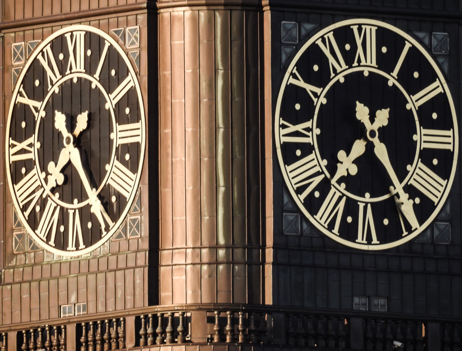 "Fünf vor halb acht" - Blick über die Elbe auf den Michel-Kirchturm , 3. April 2015
