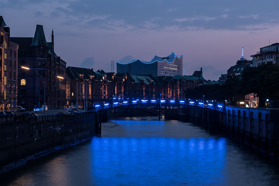 "Blaues Licht im Hamburger Hafen" - Ein Werk des Lichtkünstlers Michael Batz , 11. September 2015