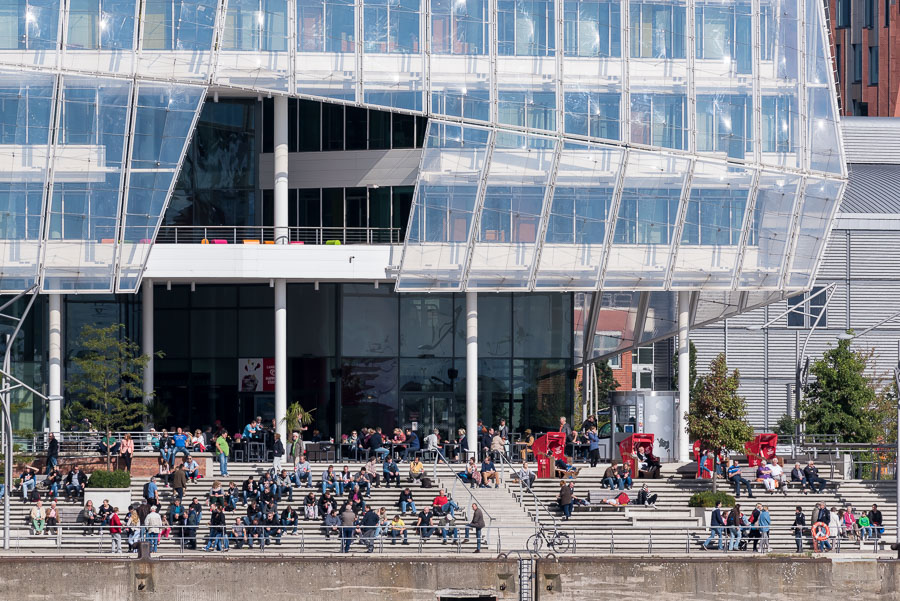 "Sonnenanbeter" - Treppenstufen vor dem Unilever Gebäude direkt an der Elbe , 27. September 2015