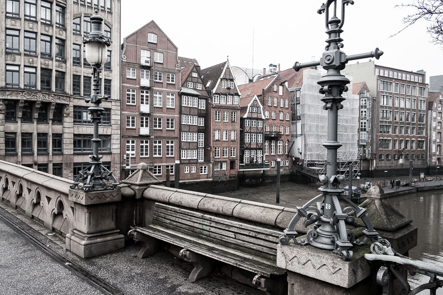 "Rückseitenansicht der Deichstraßenhäuser" - Blick von der Hohen Brücke , 1. Januar 2016