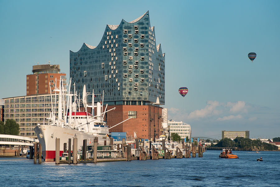 Elbphilharmonie / Heißluftballons über der Norderelbe, 16. August 2016