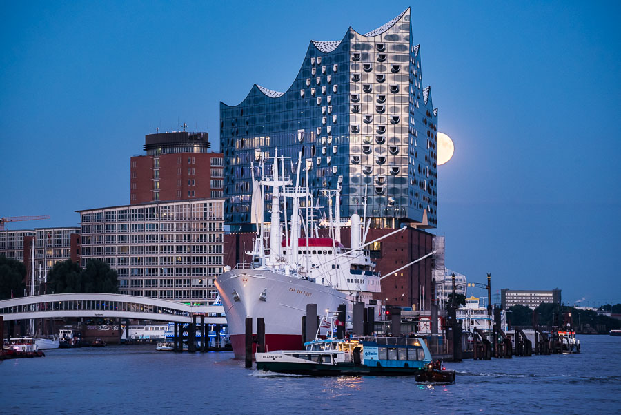 Elbphilharmonie / Cap San Diego / Mondaufgang, 18. August 2016