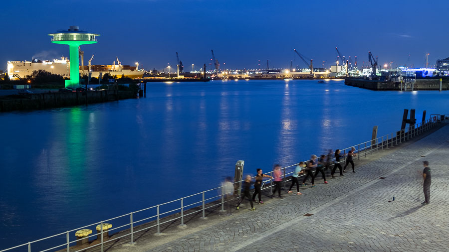 Abendtraining am Versmannkai / Blick von der Baakenhafen Brücke, 22. September 2016
