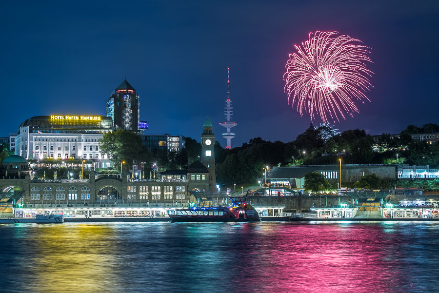 Hotel Hafen Hamburg und Landungsbrücken / DOM-Feuerwerk am Freitagabend, 4. August 2017