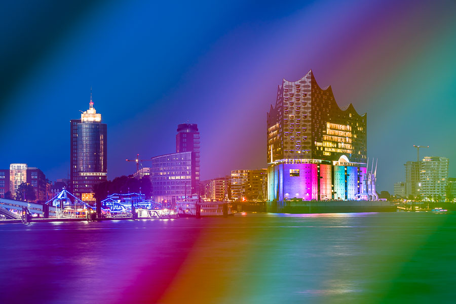 Elbphilharmonie mit spezieller Beleuchtung zum CSD, 6. August 2017