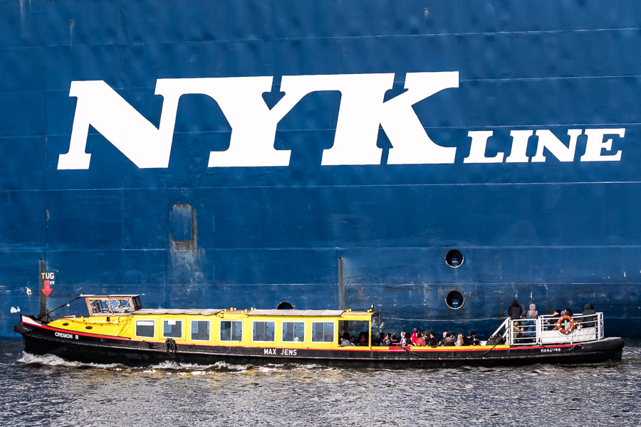 "Barkasse vor Containerschiff" / im Hansahafen , 30. März 2018