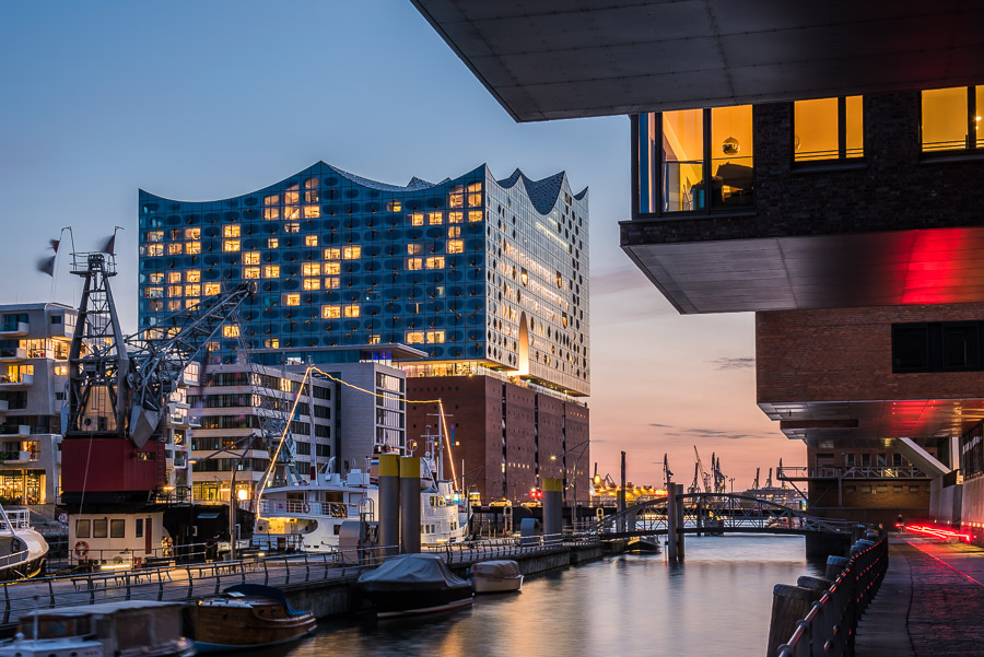 "Sandtorhafen & Elbphilharmonie" zur blauen Stunde, 31. August 2018