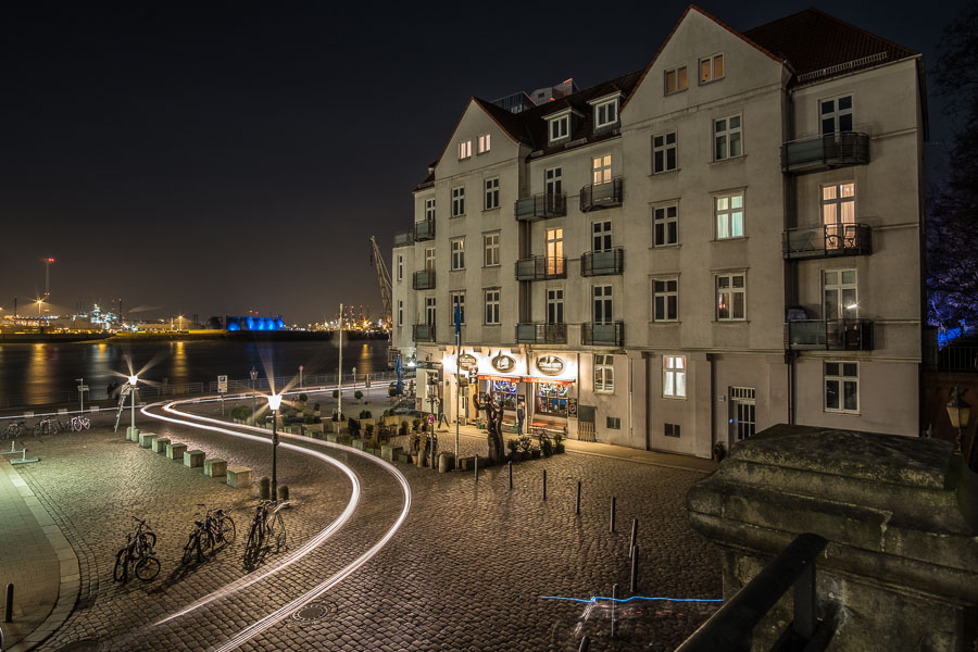 "Hafenkneipe Schellfischposten", Blick von der Köhlbrandtreppe 17. Februar 2019