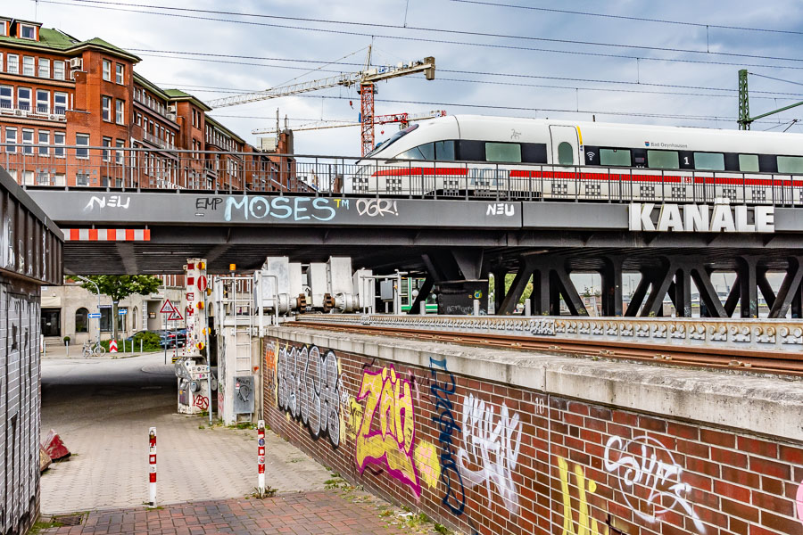 "Ein ICE kurz vorm Halt im Hauptbahnhof", Oberhafenbrücke 10. August 2019